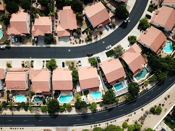 A sleek, two-story home with a glass front, advanced lighting automation, zoned heating, and a seamlessly integrated alarm system.