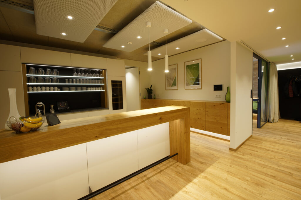 Our security concept offers 360° protection through the integration of smoke and water detectors, as well as burglary prevention measures. In the event of a break-in attempt, an alarm is automatically triggered, for example, causing the lights to flash red. The system also detects open windows and doors, adjusting the shading to a secure position.